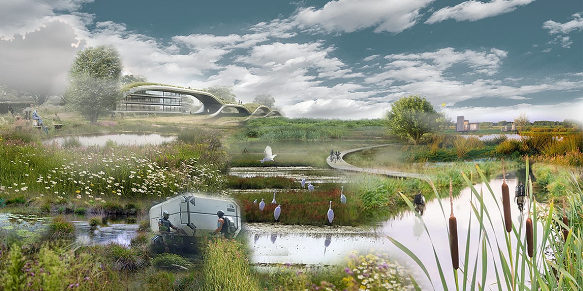 Sur ce sujet, le travail des étudiants paysagistes de la Van Hall Larenstein University of Applied Sciences était intéressant : parmi les différents scénarios proposés pour les Pays-Bas en 2148, figurait le “Bioregional dream”, dans lequel le pays a appris à vivre avec la montée des eaux et a trouvé un nouvel équilibre, via la restauration des zones humides et la reforestation.