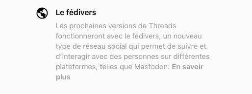 Concrètement, cela reviendrait à rendre Threads interopérable avec d’autres réseaux sociaux décentralisés, comme Mastodon.